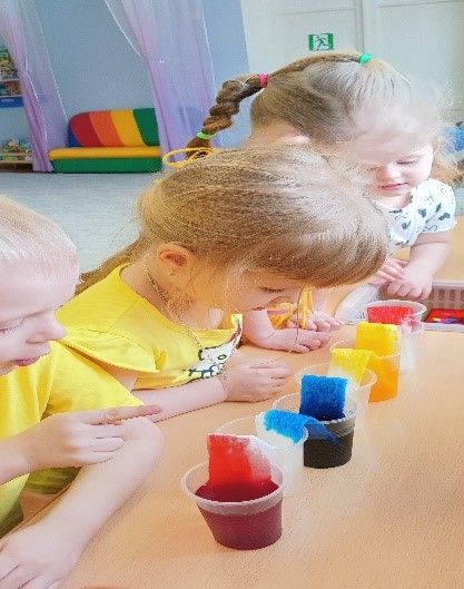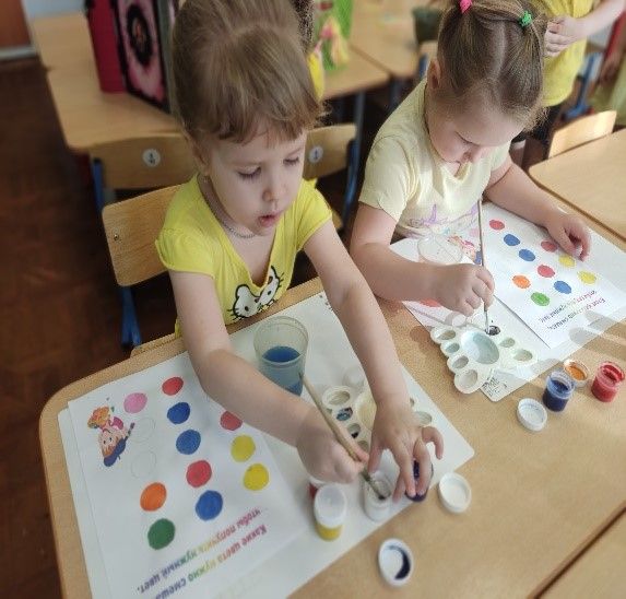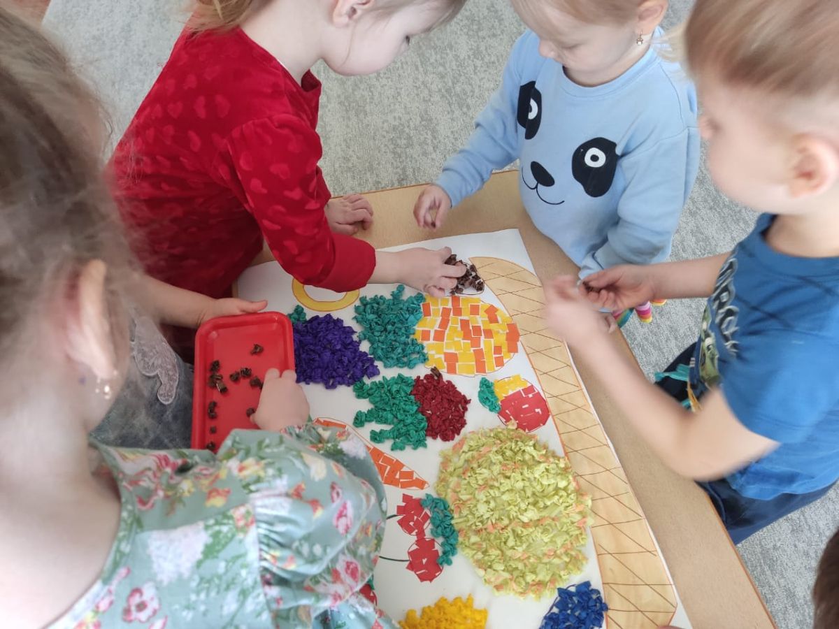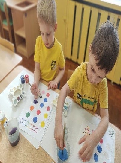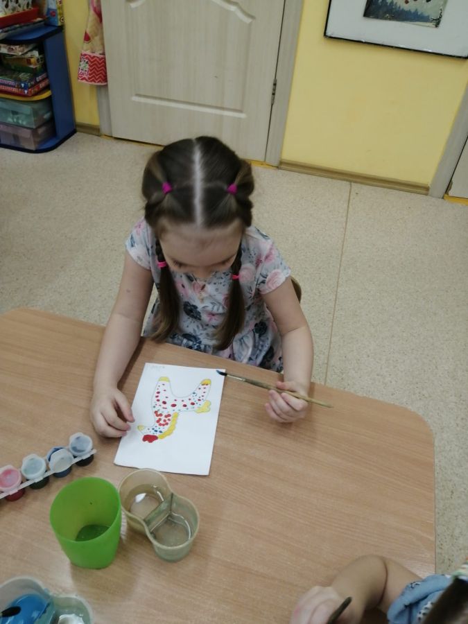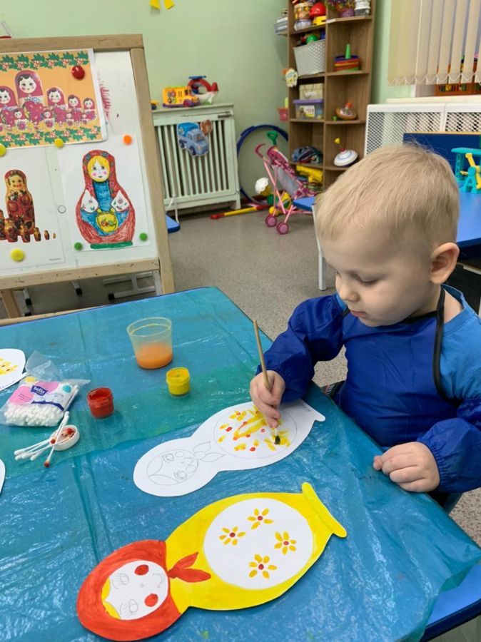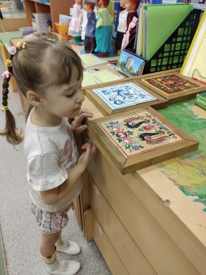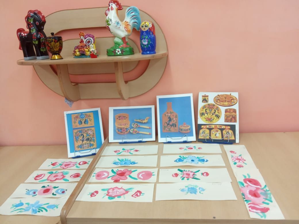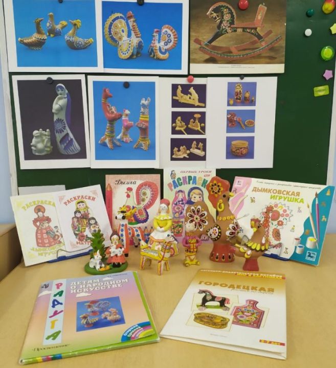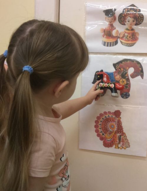 С незапамятных времен на Руси в жизни русского народа важное место занимала особая форма творчества — «промысел» или «промыслы». Вещи, которыми люди каждый день пользовались в своей обычной жизни, украшались живописцами как настоящие произведения искусства. Каждый народные промысел был выдержан в собственном индивидуальном стиле, который появился благодаря истории того или иного региона, его обычаев и традиций. Рассматривая альбомы и раскраски, дети знакомились с элементами, узорами, орнаментами, сюжетными композициями народного творчества, а затем сами пробовали передать это в своей работе. А с каким удовольствием и усердием ребята обводили трафареты матрёшек, дымковских игрушек!