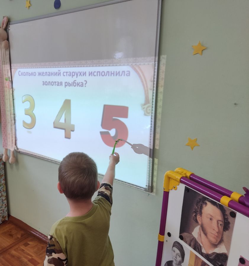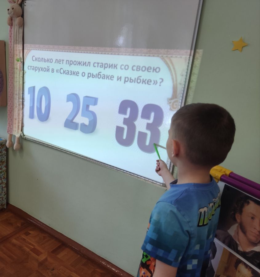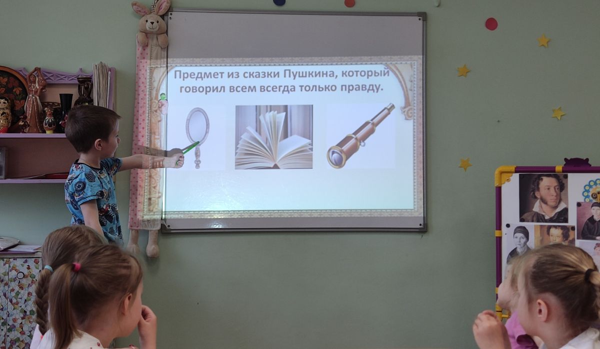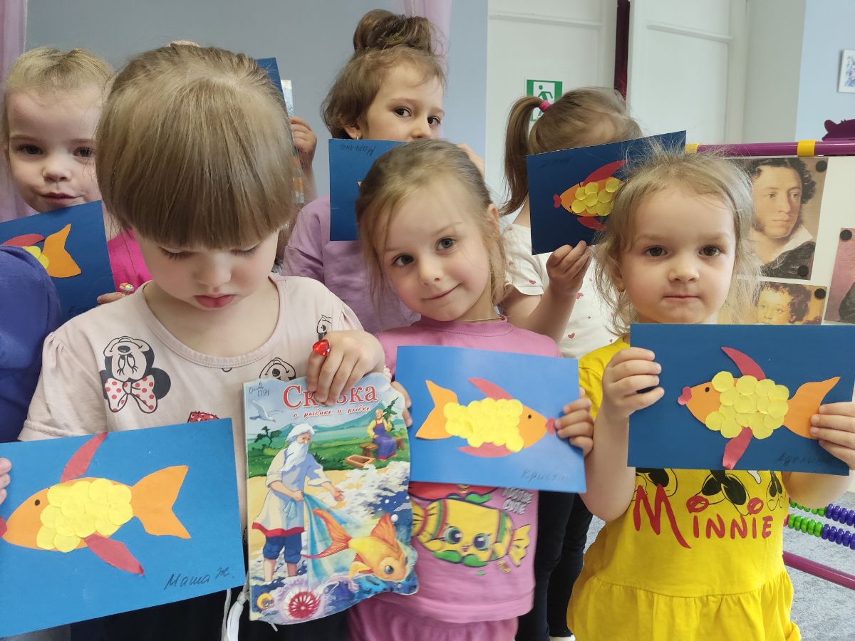 Ребята с удовольствием выполнили аппликацию «золотой рыбки», рисовали понравившийся эпизод любимой сказки А.С. Пушкина, играли в игру «Смотри, не ошибись», где из персонажей различных сказок нужно было выбрать героя Пушкинской сказки, наводили «Сказочный порядок», расставляя картинки с изображением насекомых в той последовательности, как князь Гвидон летал к царю Салтану, и к кому вначале обращался за помощью королевич Елисей.