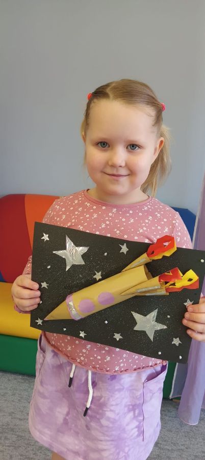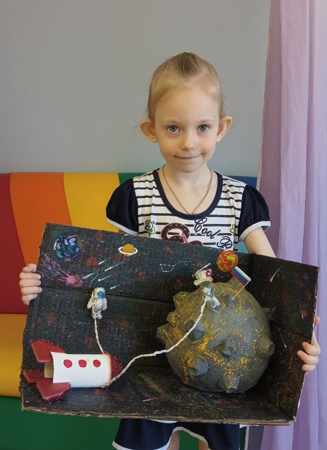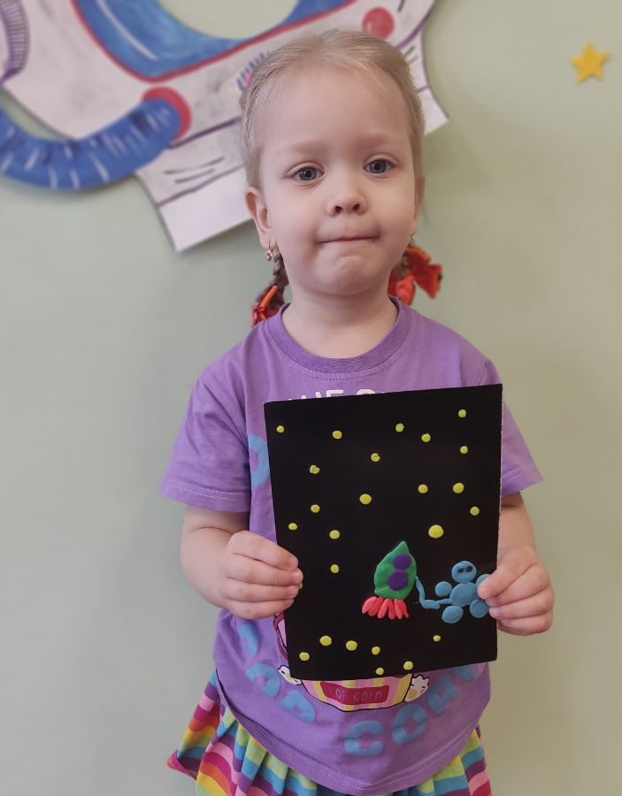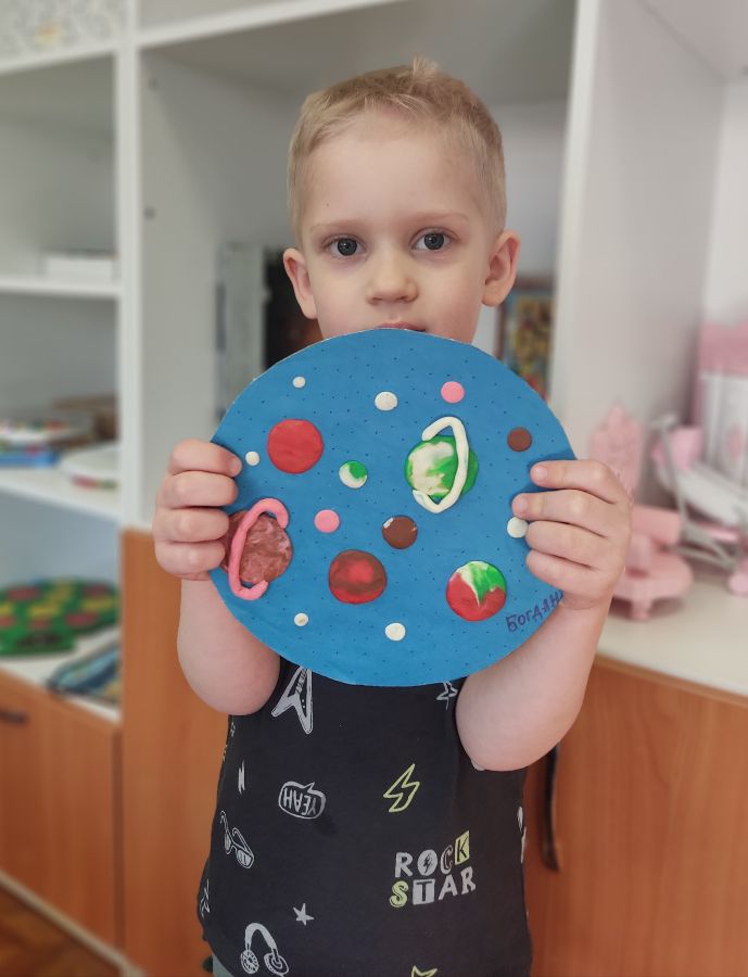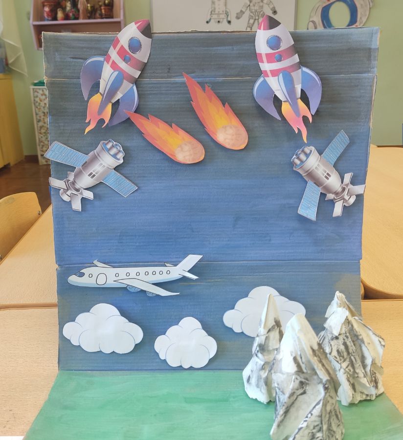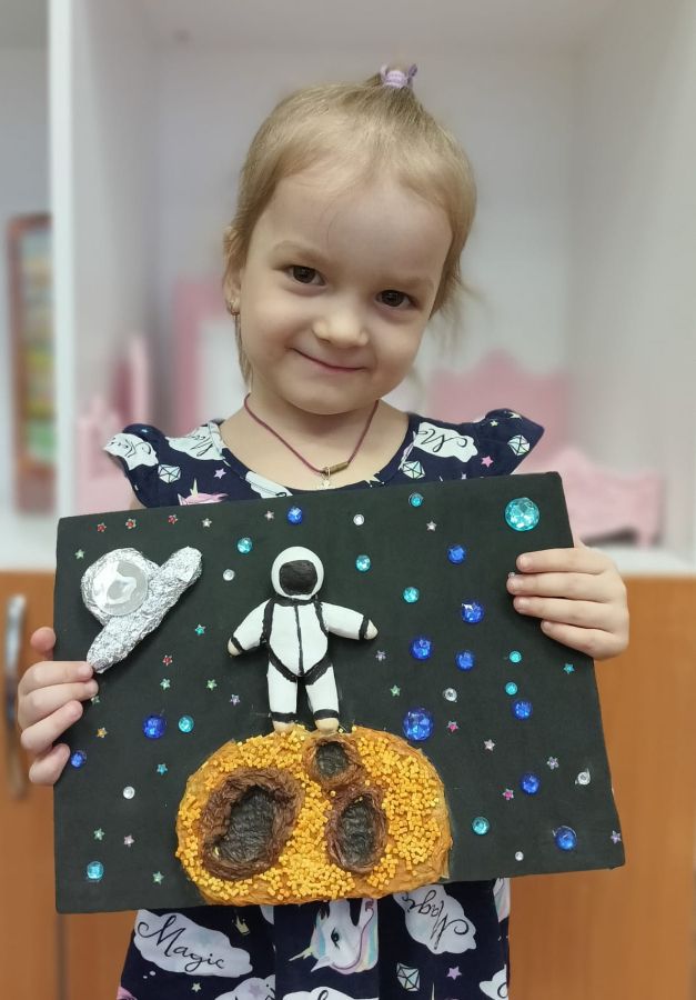 Наши ребята узнали много нового и интересного о космосе: делали рисунки, аппликации, примеряли шлем космонавта, слушали художественные произведения, рассматривали иллюстрации в книгах о космосе, заучивали стихотворения и считалки по теме космоса и др.