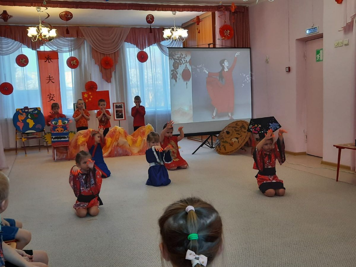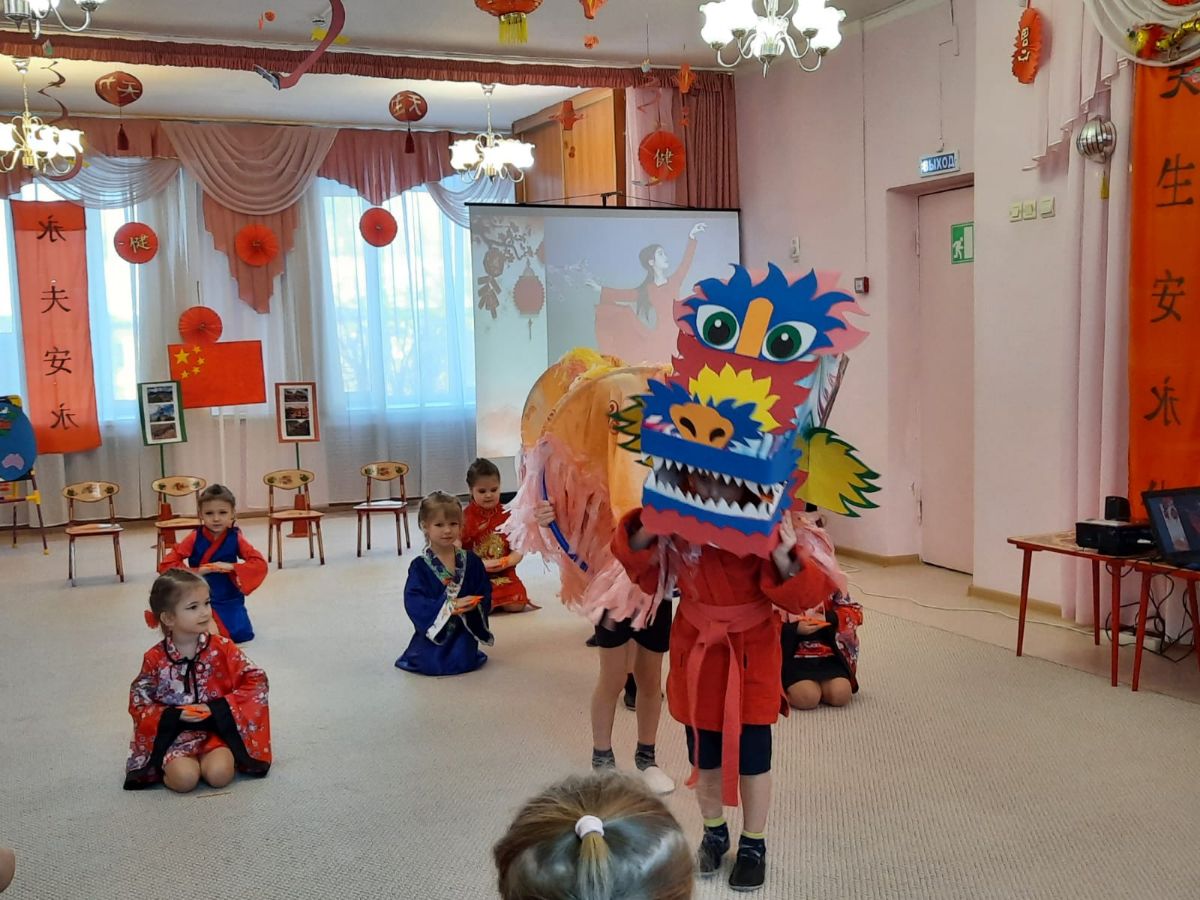 Ну а завершилось путешествие музыкальным развлечением, на котором наши девочки и мальчики, нарядившись в китайские костюмы, исполнили «Танец с драконом», рассказали о животном и растительном мире Китая, его традициях. И, конечно, красивой фотосессией!