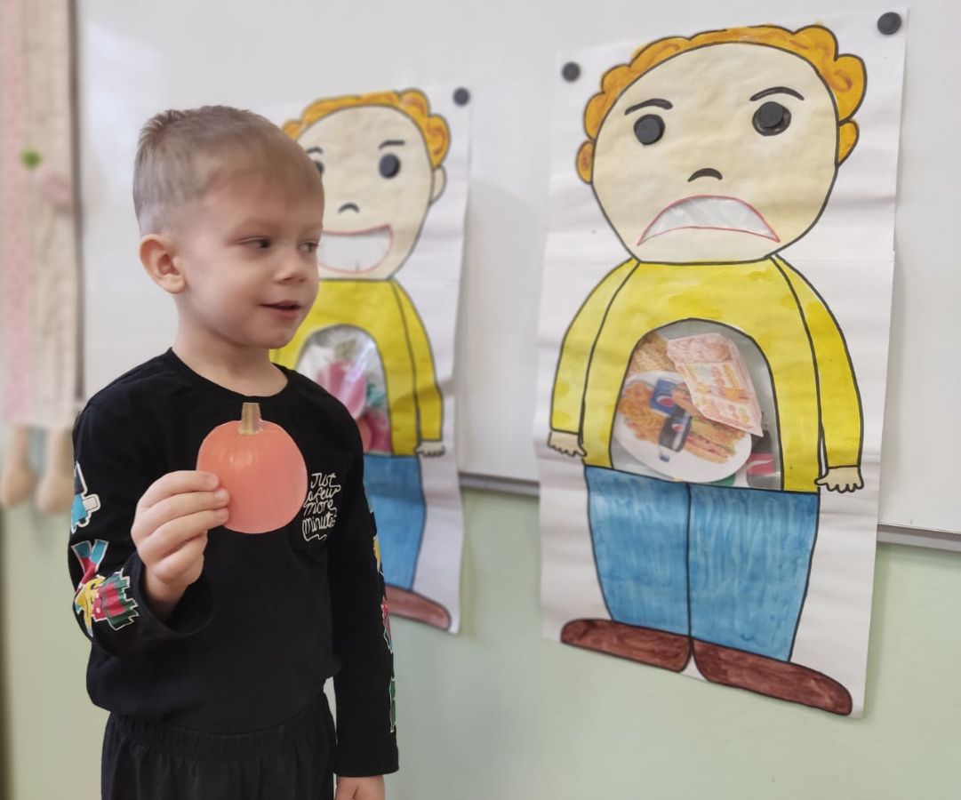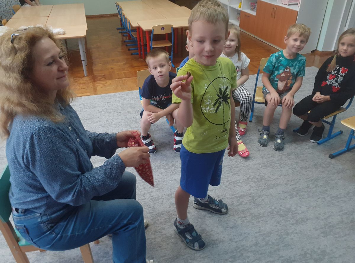 Осень поблагодарила наших малышей и подарила «волшебное» яблочко, в котором оказались конфетки.