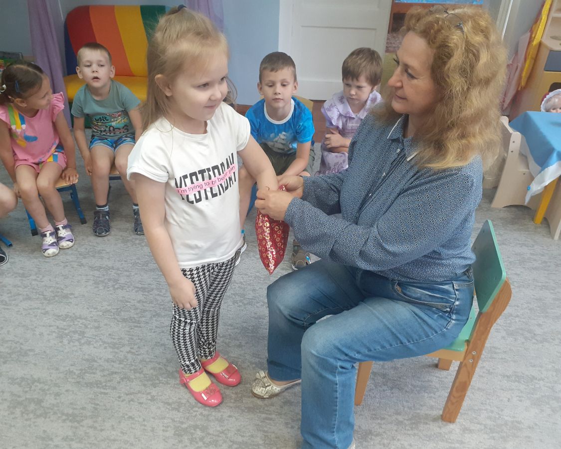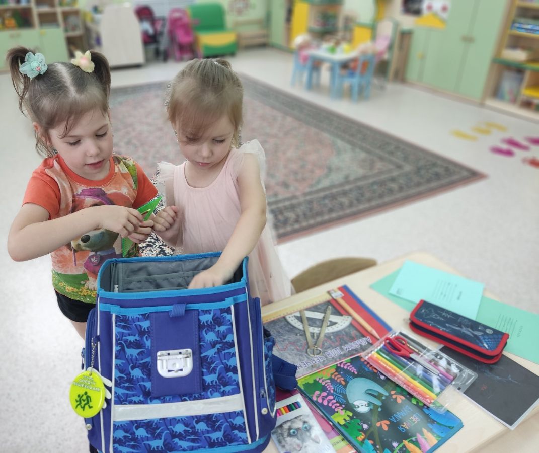 Дети с удовольствием играли в игру «Собери портфель», примеряли на себя школьный ранец.