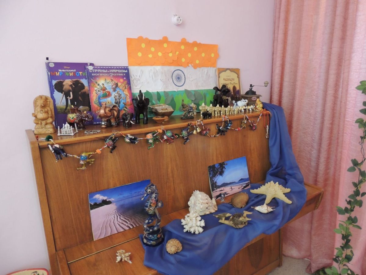 С помощью родителей в группе была организована тематическая выставка. А итогом путешествия стало музыкально-развлекательное мероприятие, на котором ребята рассказали о Тадж-Махале-самой знаменитой достопримечательности страны, фестивале красок Холи-ярком празднике в Индии, заклинателе змей и, превратившись в актёров, показали индийскую сказку «Принцесса Мак» с зажигательным индийским танцем.