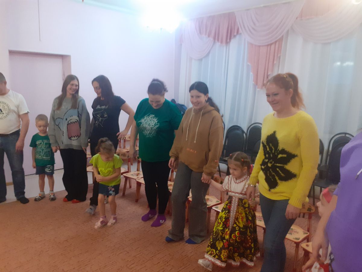 Дети с родителями принимали участие в необычных конкурсах и эстафетах. На скорость наполняли корзинки грибами и репой, исконно русскими традиционными продуктами, показывали и угадывали животных, рисовали берёзку, собирали матрёшку, метали валенок и рассказывали пословицы и даже выполняли артикуляционную гимнастику с сушками.