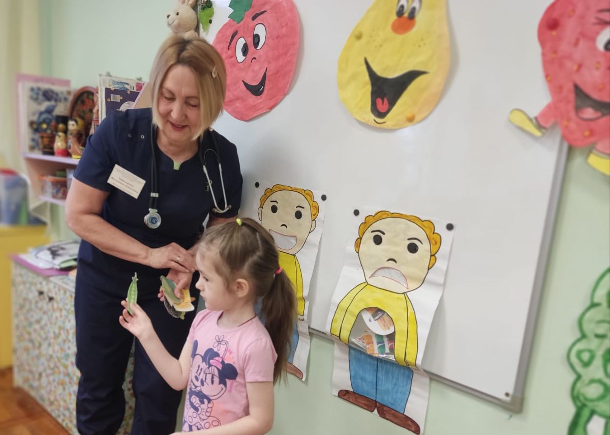На фестивале побывало более 200 участников, в том числе я, Шаткина Ирина Павловна, и моя напарница, Шабанова Зарема Диляверовна. На площадке БиоГеограда мы представили мастер-класс, поделились опытом работы с детьми по теме «Строение человека».