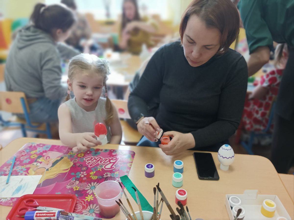 Вот и в нашей группе прошёл мастер-класс для родителей с детьми «Пасхальные приготовления», на котором наши участники не только учились раскрашивать пенопластовые яйца, но и делать для них подставки.