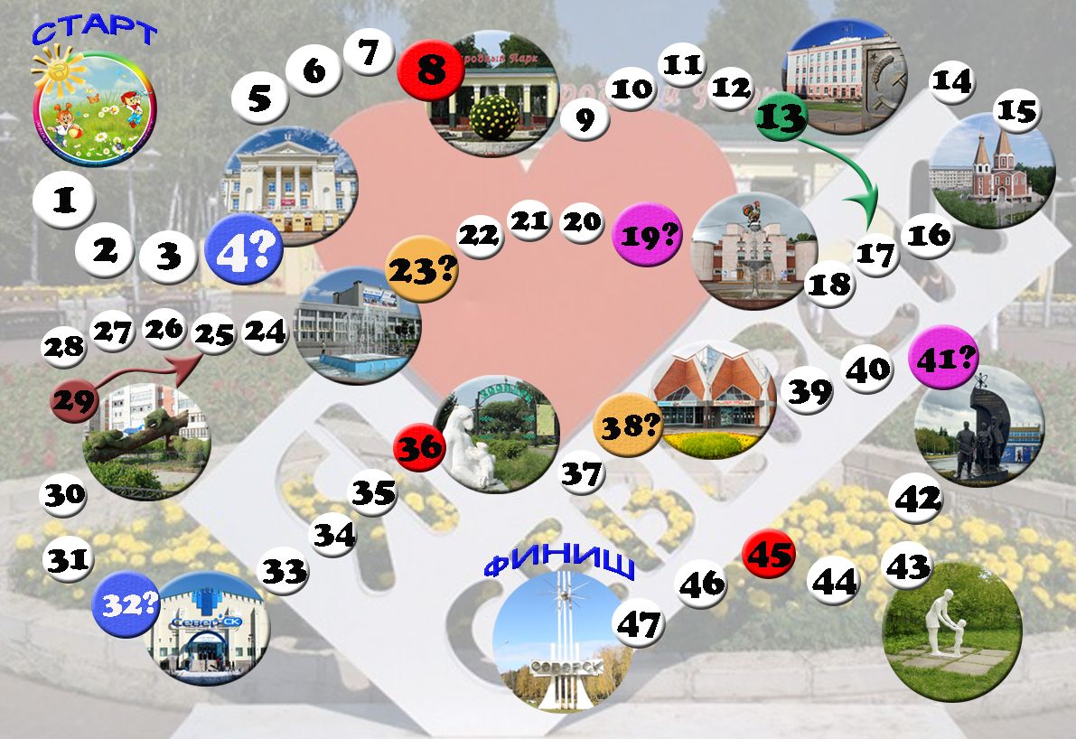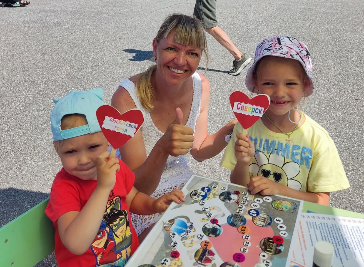 ребята поиграли в игру- ходилку "Путешествие по городу Северску", где не только бросали кубик, но и отвечали на вопросы по истории города и его достопримечательностям.