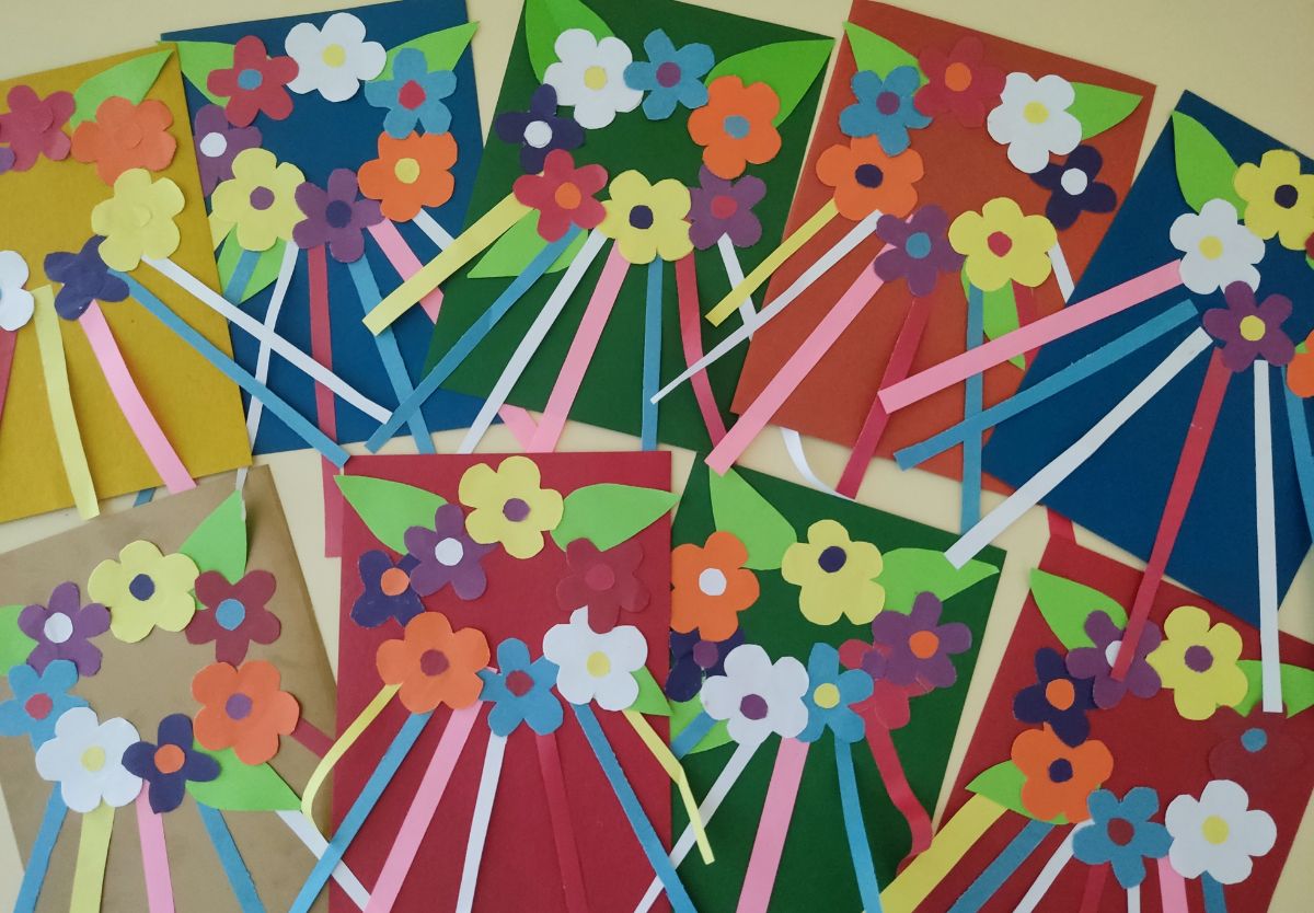 Вот какие красивые открытки у нас получились, которые потом будут подарены ветеранам и труженикам тыла ВОВ.