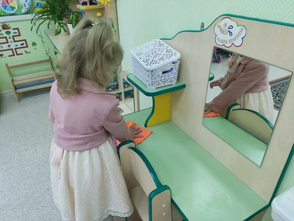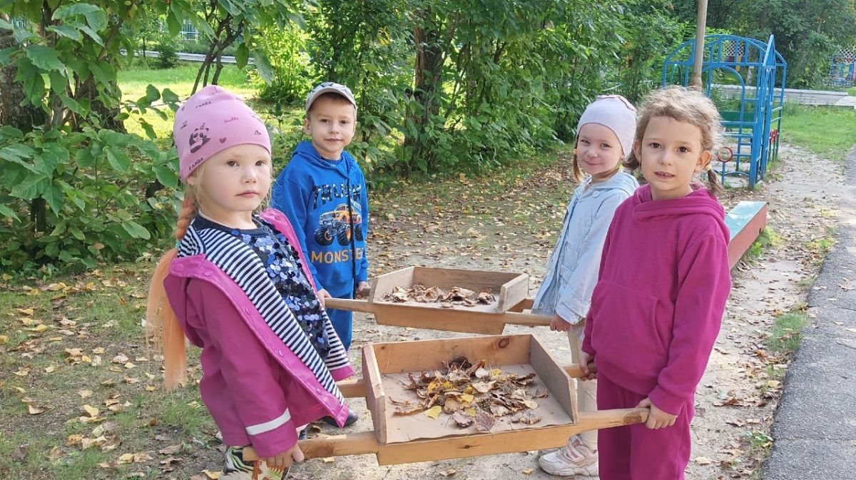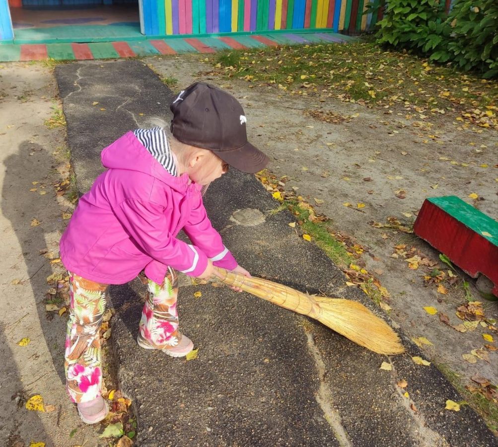 Например, ребёнок в детском саду может ухаживать за комнатными цветами, протирать пыль, помогать накрывать на стол, ремонтировать книжки, подметать дорожки на участке, убирать листья и т.д. С каким воодушевлением они это делают!