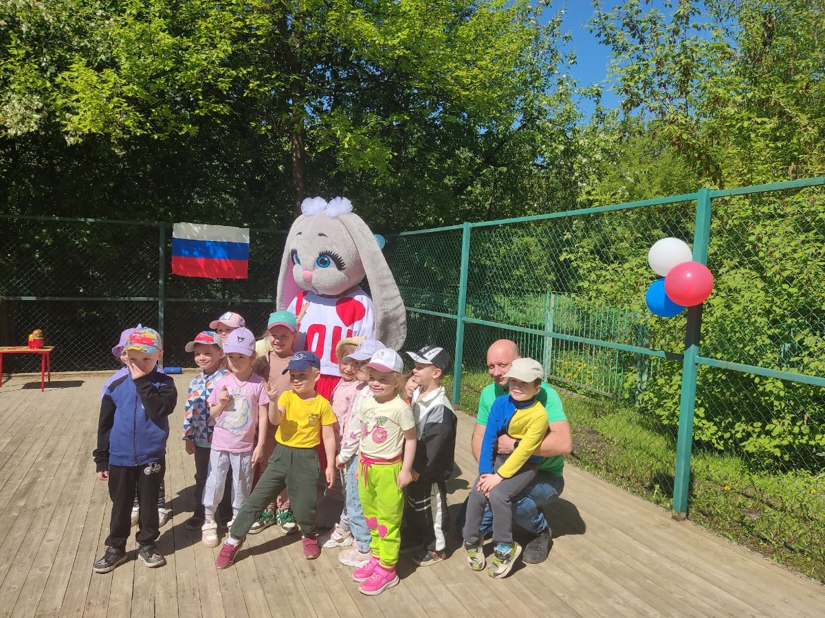 А поздравить ребят и взрослых с Днем России пришёл Зайка, который весело танцевал с ребятами.